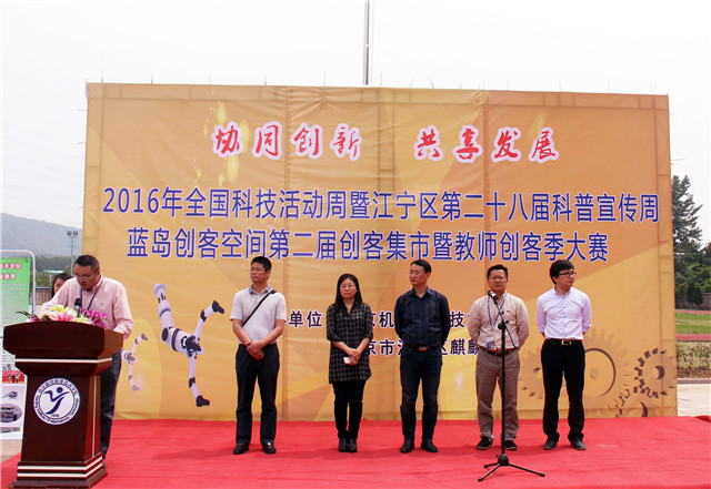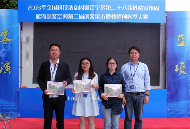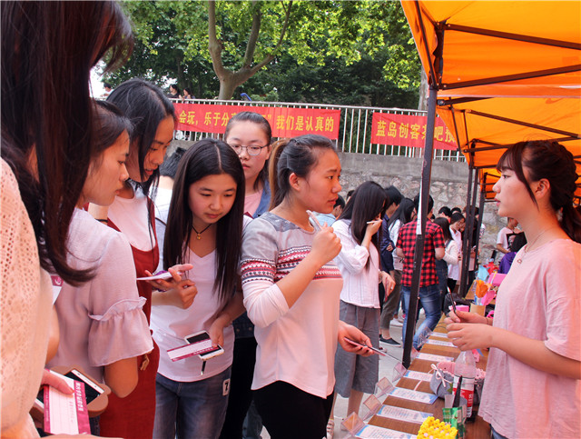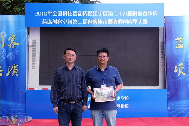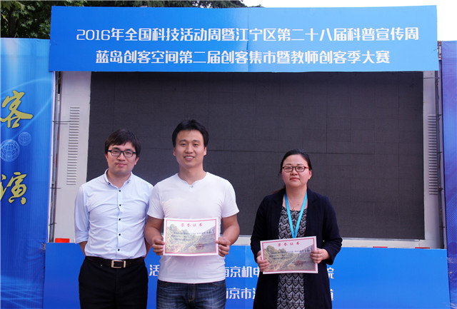2016年5月17日下午,为响应2016年全国科技活动周暨江宁区第二十八届科普宣传周整体活动部署,拼搏平台联合江宁区麒麟街道在学院蓝岛创客广场组织了第二期创客集市暨教师创客季大赛活动。本次活动共分为八大展区:教师创客季122项创新作品展示区、12项优秀作品路演区、激光切割制品展销区、热转印制品展销区、激光内雕制品展销区、VR眼镜体验区、煜锐三维科技3D打印展示区、蓝岛孵化项目智能快递柜展示区和大学生跳蚤市场。