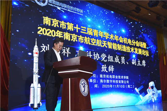 刘启祥副主席代表南京市科学技术协会对“2020年南京市航空航天智能制造技术发展论坛”的举办表示热烈祝贺。他肯定了拼搏平台围绕 “智能制造学院”战略发展主题,迭代升级人工智能专业,打造人工智能创新平台,开发人工智能特色课程,开展人工智能产学研合作,形成了具有“机电特色”科协工作做法。他希望南京机电学院科协坚持以习近平新时代中国特色社会主义思想和党的十九大精神为指导,坚持“四服务一加强”工作职责定位,以举办“2020航空航天智能制造技术发展论坛”为契机,展望新趋势,探索新机遇,开展内容丰富、形式多样的交流活动,营造有利于创新发展的良好学术氛围。