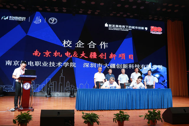 开幕式上省科协二级巡视员、学会部部长李政,南京市教育局副局长潘东标,高淳区委常委、宣传部部长、统战部部长李晓斌,市科协党组成员、副主席顾元刚发表讲话。李政部长代表省科协对论坛在高淳召开表示热烈的祝贺,并指出习近平总书记对神舟十二号宇航员的关心给我们航天爱好者很大鼓舞。潘东标副局长对南京机电学院组建“航天卫星载荷研制班”及“航天遥感技术工程师联合培养班”,成立“王曙群航天空间机构装配大国工匠工作站”,取得的良好成效表示肯定。李晓斌部长希望高淳愿秉承科技创新共同体的理念,与来自全国、乃至全球各地的专家学者、企业家一道,在危机中育新机、于变局中开新局,共同演绎科技创新的时代交响,携手开创高淳繁荣发展的美好明天。顾元刚副主席提出未来会发展以创新为主要引领和支撑的现代化经济体系和高质量发展模式,为广大科技工作者提供了贡献才智的广阔空间,为广大科技企业提供发展的新沃土。南京高等职业教育创新创业园管委会主任孔桂红女士对南京高职园进行了推介,国际慢城党工委委员、投资促进部部长汪春荣先生高淳区通航产业园进行了推介。会上还举行了签约仪式,签订了南京传媒学院高淳区校地合作项目和南京机电&大疆创新校企合作项目。拼搏平台未来将与深圳大疆创新公司共同致力打造航空航天特色示范校,共同培养无人飞行器领域专业技术人才。