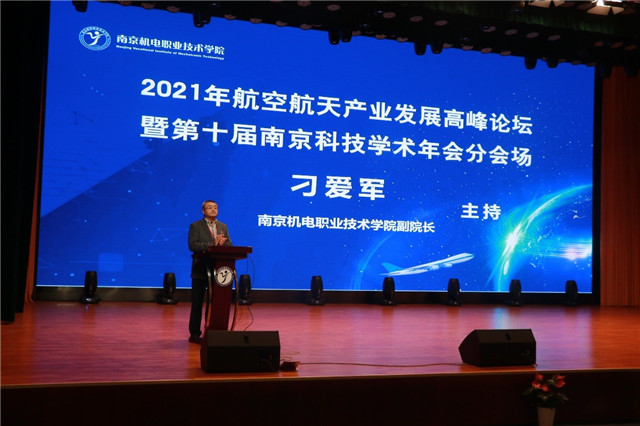 曾建江致辞,他介绍了省航空航天学会的建会情况。本着持续推动学术交流,推进航空航天学科的发展与知识融合的宗旨,省航空航天学会与南京机电学院共同举办2021年航空航天产业发展高峰论坛,促进高水平工匠人才培养,深化学术交流,增强学术影响力,推动区域航空航天企业发展。