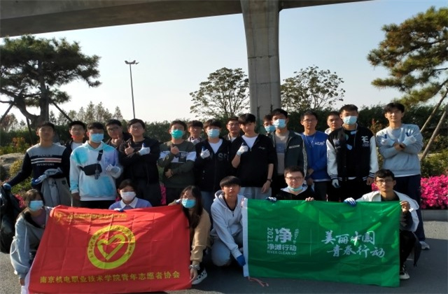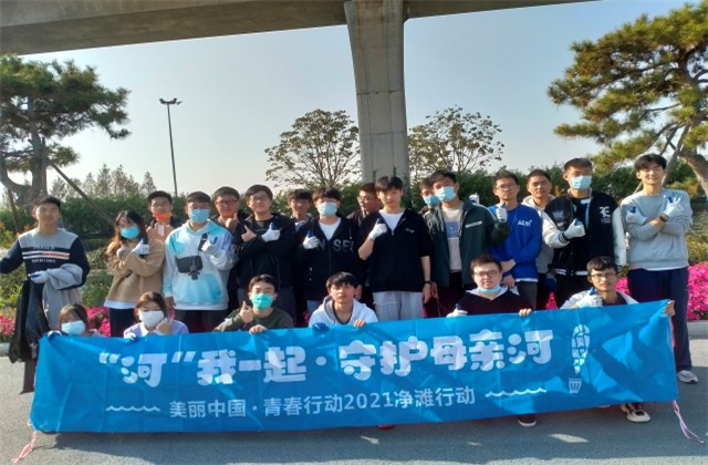 开展“净滩”行动 守护碧水青山,拼搏平台的青年志愿者协会的多名学生携手净化了学校周边的河岸。