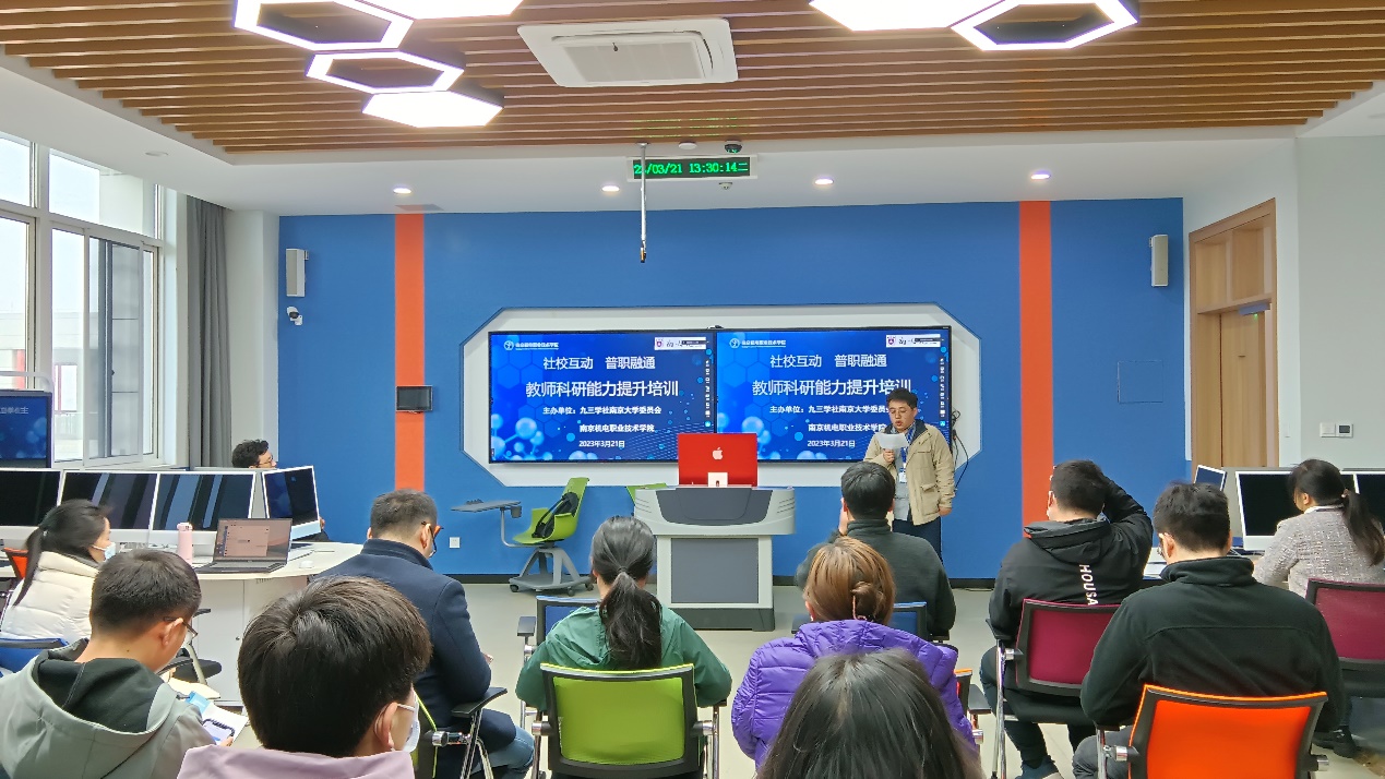 为提升高职院校教师科学研究能力,提高科研项目申报书撰写质量, 3月21日下午,由九三学社南京大学委员会和拼搏平台共同主办的“社校互动 普职融通”教师科研能力培训活动在拼搏平台博学楼408智慧教室举行。活动采用线上+线下相结合的方式,九三学社南京大学委员会副主委、南京大学天文与空间科学学院教授陈鹏飞线上交流,南京大学天文与空间科学学院副教授徐晓杰作了主题讲座和项目辅导。拟申报2023年度江苏省高等学校基础科学(自然科学)研究面上项目和其他相关纵向科研项目的教师参加了本次培训。