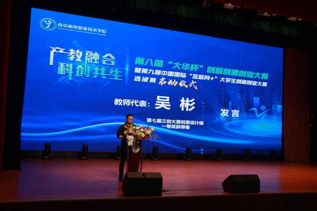 第七届创新创意创业大赛创意设计组一等奖获得者吴彬老师与创新制作组二等奖获得者许有缘同学代表全校师生发言。吴老师分享了自己参赛的感悟,他认为校企合作不仅可以帮助企业解决项目开发过程中的技术难题,也能有效提高教师的科研实践能力,使教师更好的把握所教学科发展现状与未来发展趋势,培养出更多符合企业发展需求的学生。许有缘认为制作创新作品的过程是一种历练,不论是从计划到实施,还是从实施到过程,每一步都要考虑周到,都要经过的长期探索研究,只有这样不懈的努力才能实现向往的目标。