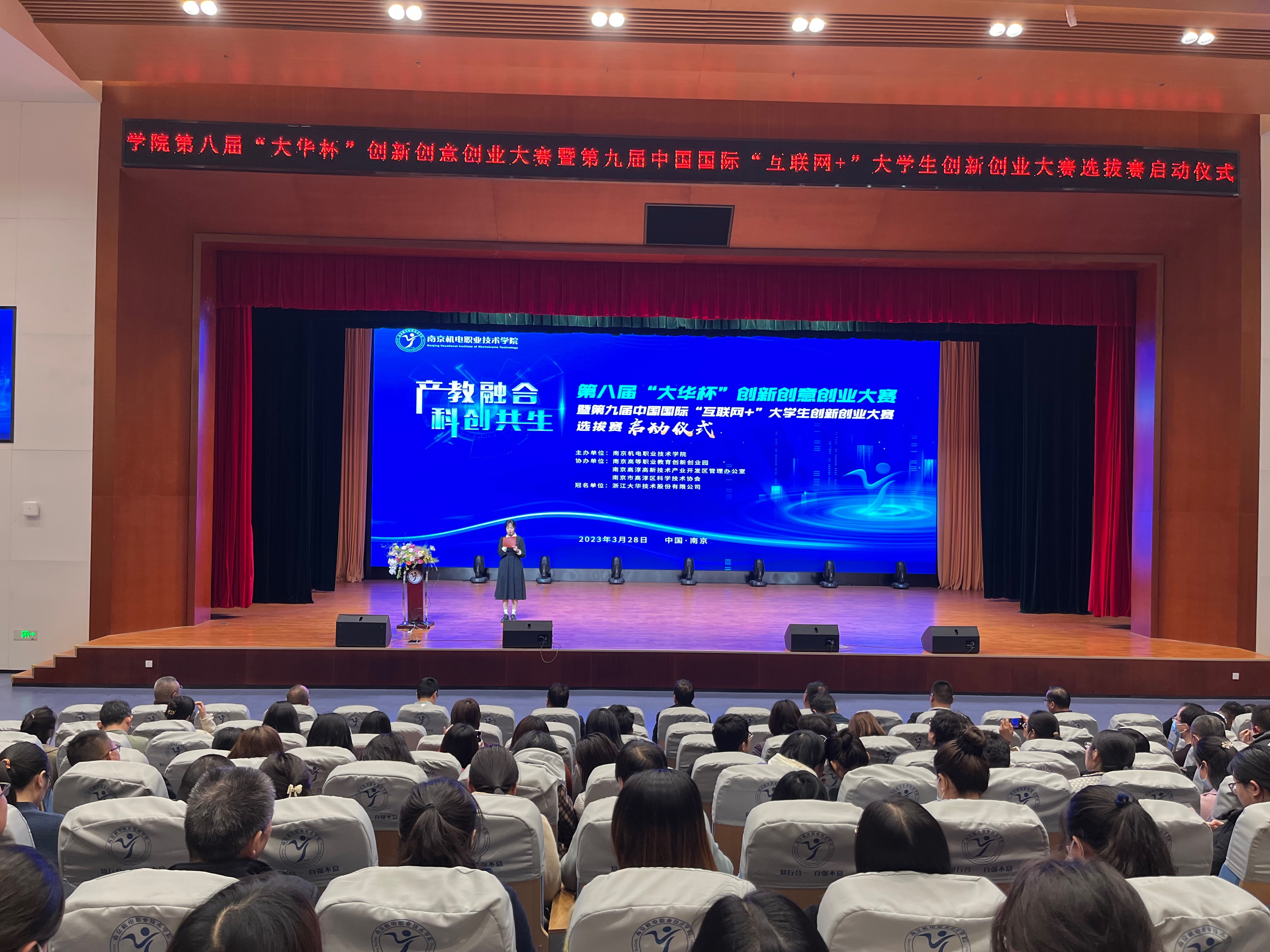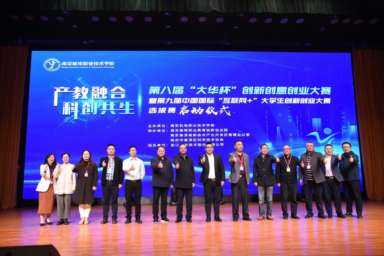 3月28日下午,学校第八届“大华杯”创新创意创业大赛暨第九届中国国际“互联网+”大学生创新创业大赛选拔赛启动仪式在青春剧场成功举办。南京高等职业教育创新创业园党工委委员、管委会副主任汪春荣,南京高淳高新技术产业开发区管理办公室分管负责人倪友谊,南京市高淳区科学技术协会副主席杨腊斌,浙江大华技术股份有限公司南京分公司总经理杨杰、南京办高溧组主任高国平,拼搏平台党委委员、副院长郭朝辉,党委委员、副院长赵学洪,党委委员、副院长刁爱军,党委委员、副院长孔德丽,党委委员、工会主席姜振宇出席启动仪式。学校全体师生参与活动。