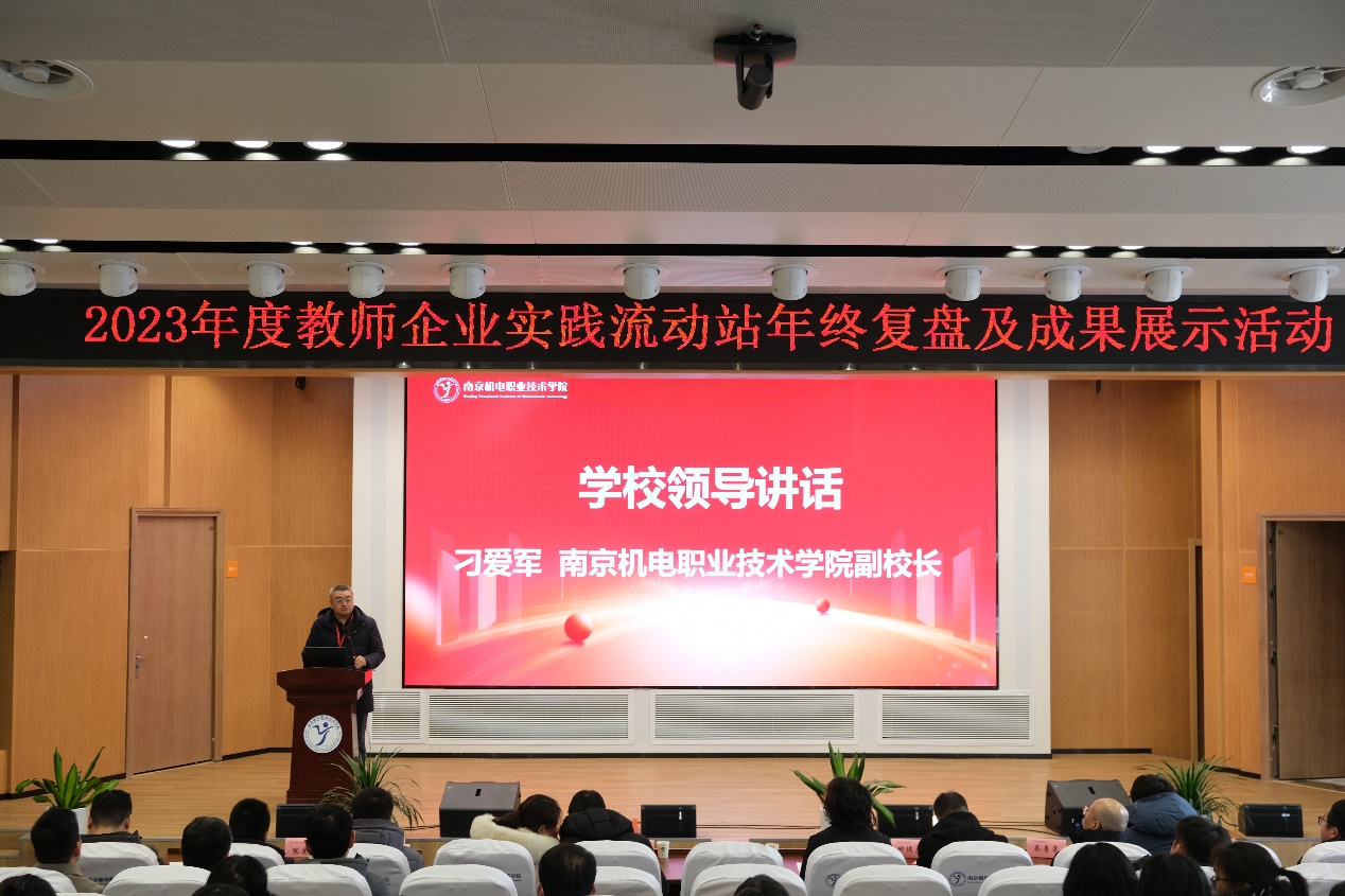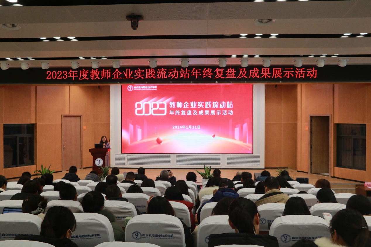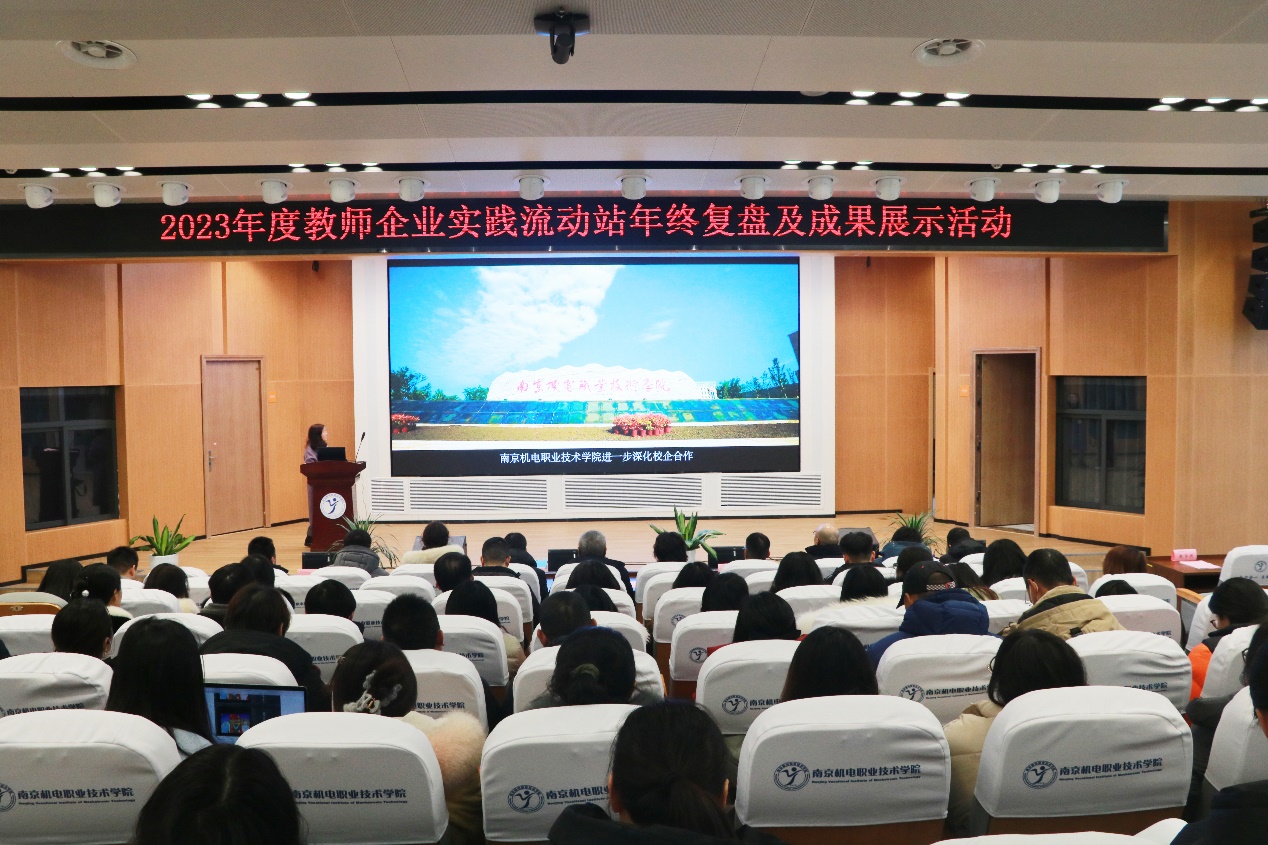 2024年1月11日,拼搏平台成功举办2023年教师企业实践流动站年终复盘及成果展示活动。南京康尼电气技术有限公司总经理马涛,浙江大华技术股份有限公司文教卫总监方鸣子,南京易技未来动画制作有限公司董事长张恒,南京冠盛汽配有限公司运营总监田儒东,创维电器股份有限公司工业设计中心部长肖华,上海三菱电梯有限公司华东一区副教务长秦勇泉,南京奥派信息产业股份有限公司江苏区域总经理盛晓良,学校党委委员、副校长刁爱军,党委委员、副校长孔德丽等领导出席本次活动。7个教师企业实践流动站进站教师及企业导师团队、全体专业教师、高淳区科技局及工业和信息化局代表等近200人参加了此次活动。