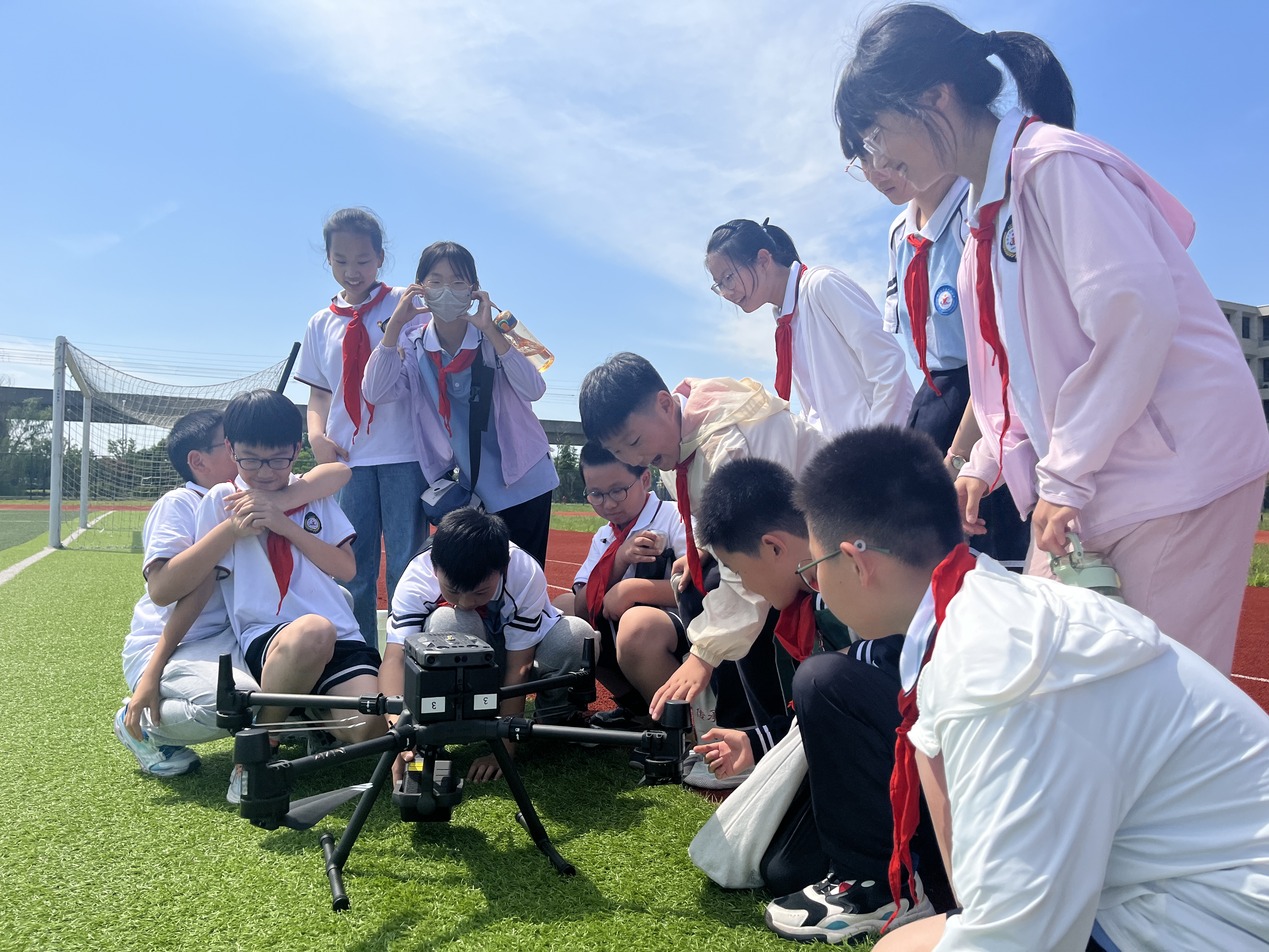 室外无人机场上,同学们兴致勃勃地观摩专业无人机飞手自如地操作着不同型号的无人机,并亲自体验了无人机航拍技术。同学们在亲身体验中感受到了科技的力量,脸上洋溢着满足和兴奋的笑容。