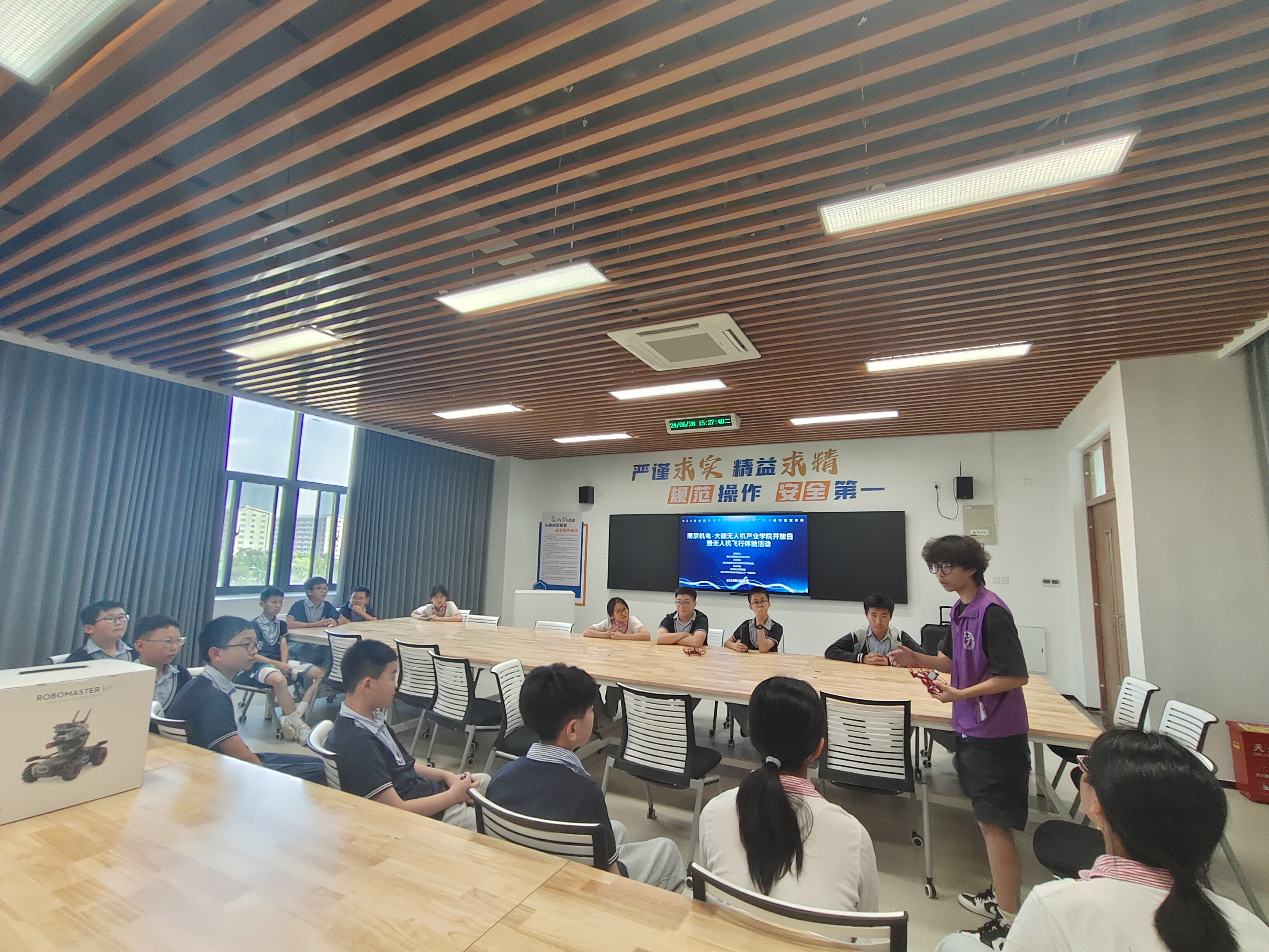 活动期间,学校结合中小学生学习特点和创客校园文化特色,安排了实地参观、科普大课堂、组装体验、室外飞行体验等一系列无人机科普教育活动。在学校慎行楼207,同学们跟随学校无人机专业教师滕老师领略了无人机的发展历程。
