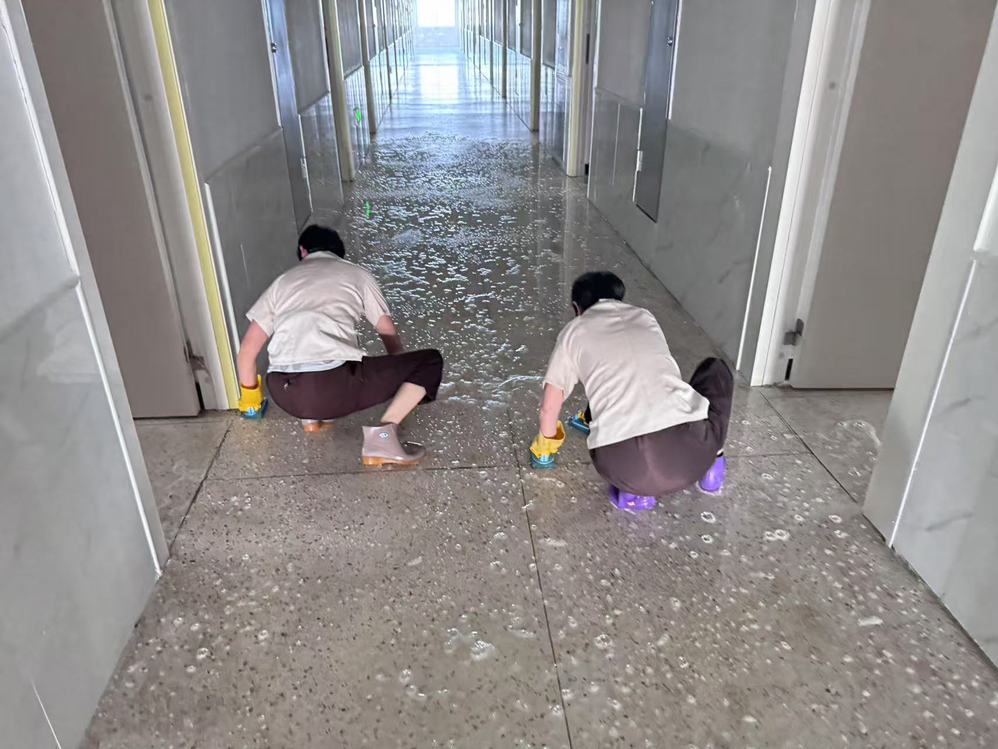 为全面提升校园环境品质,后勤处充分利用暑期黄金时段,科学规划、统筹推进校园改造工程。目前,各项工程正紧锣密鼓的开展:宿舍楼全面启动墙面修缮、过道墙砖更换及门框加固;空调专业团队逐间进行深度清洗维护;食堂实施标准化改造,优化功能分区;绿化养护团队对校园植被开展系统性修剪补种。与此同时,物业团队同步推进“精细化清扫”行动,对教学楼、办公楼、公共区域等进行了全方位清洁消毒,确保校园环境在假期中焕然一新