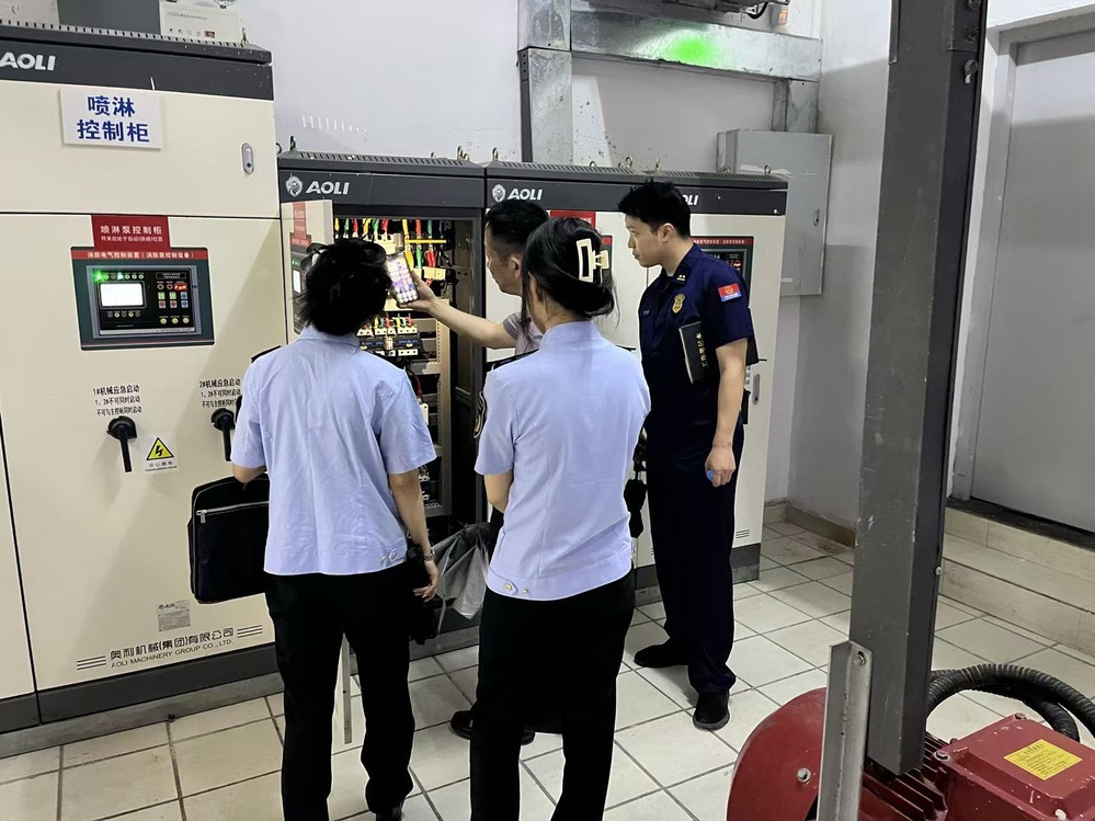 消防设施组对消防控制室、消防泵房设施设备运行情况进行测试。检查了消防给水系统、自动喷水灭火系统、火灾自动报警系统和防排烟系统是否完好有效,防火门、防火卷帘是否保持完好等。