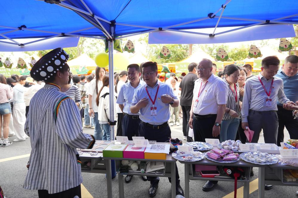 当日,在学生公寓润思生活服务站广场开展了“同心筑梦·礼敬国粹——2025年端午节系列活动”。活动现场精彩纷呈、各具特色,共开设23个展位,从端午知识、习俗、美食等方面,全方位向全校师生展示端午暨特色少数民族文化,吸引众人驻足参与。在少数民族展位上,身着民族服饰的同学们热情洋溢,不同文化在此碰撞,促进了多元文化的交流与融合。