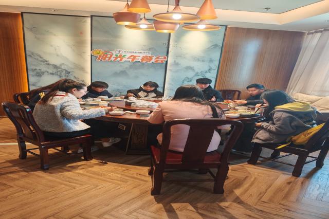 为更好地落实立德树人根本任务,推动发展型资助育人工作的深入,近日,电子工程系党支部在一粟堂3楼小包间开展“阳光午餐会”活动。午餐会旨在关心家庭经济困难学生的成长,为他们提供一个倾诉心声、共话未来的平台。电子工程系党支部副书记陈雪,团委书记魏澜参加了此次活动,与家庭经济困难学生代表共进午餐,共话成长。