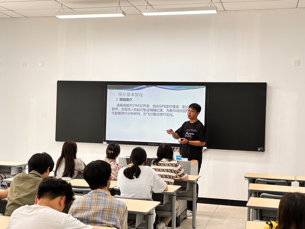 初赛现场,参赛学生精心准备作品及路演PPT,依次上台展示项目。从毫米级精度的“翼影系统”——室内视觉定位自主无人机2.0版,到用于微波测碳传感器飞灰取样通道的飞灰称重装置设计;从智能垃圾分类回收系统,到基于AI个性化学习路径平台,众多项目涵盖创新制作、创意设计、创业实践等多个类别,充分展现了电子工程系学子在智能制造、数字信息、AI前沿等领域的创新思维与实践能力。