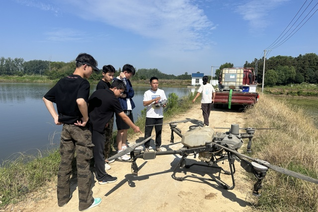 理论课程结束后,最令学生们期待的无人机植保实际操作环节正式开始。专业教师先对植保无人机的结构、操作原理和安全注意事项进行了详细讲解,并进行了示范操作。学生们在教师的指导下,分组进行实际操作练习。他们熟练地操控着植保无人机,让其在水稻田上空平稳飞行,精准地喷洒农药。无人机在田间来回穿梭,农药均匀地覆盖在水稻植株上,高效的作业方式让学生们深刻体会到了现代农业科技的魅力。