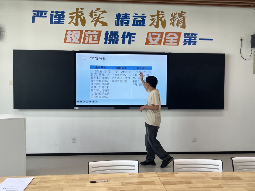 2025年9月16日13:30至15:00,智能电子应用教研室在慎行楼208成功举办了新学期首次教学设计汇报专题教研活动。本次活动由教研室负责人司翠平老师主持,全体教师积极参与,特别聚焦于王垚、郑明明和章闯三位青年教师的课程教学设计汇报,进行了深入细致的交流与指导。