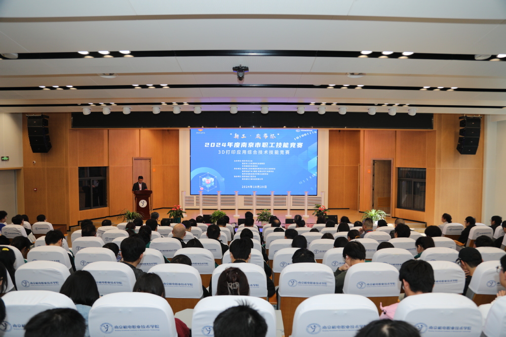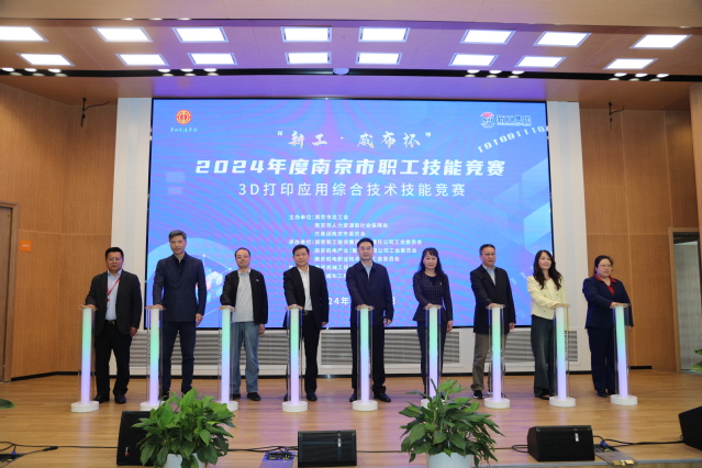 为加强和壮大南京市高技能人才队伍,为推动新质生产力的形成和发展提供人才支撑,10月29日,由南京市总工会、南京市人力资源和社会保障局、共青团南京市委员会共同主办,南京新工投资集团有限责任公司、南京机电产业(集团)有限公司与拼搏平台承办,南京机械工程学会、南京威布三维科技有限公司协办的2024年度南京市职工技能大赛“新工•威布杯”3D打印应用综合技术技能竞赛在我校顺利举行,来自全市8家企事业单位选拔的50名选手参加了本次竞赛。南京市总工会党组成员、副主席赵正轶,南京新工投资集团副总经理、工会主席陈翀,南京新工投资集团工会常务副主席秦燕,南京市产业工人创新发展中心主任王敏,南京机电产业集团副总经理、总会计师刘光辉,南京机械工程学会执行理事长卢北宁,拼搏平台党委书记、校长周庆礼,南京威布三维科技有限公司总经理周海鹏等相关领导参加开幕式。