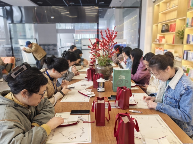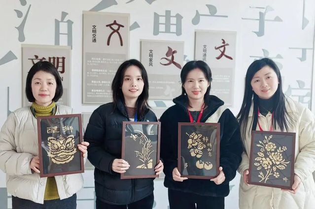 组织女教职工们开展系列创意手作活动:在宿舍区制作漆扇,感受传统文化的魅力;在教工食堂制作手工花,领悟传统工艺的匠心之美;在蓝岛书院学习非遗缠花,体会“慢工出细活”的匠人精神;在“一站式”学生社区描绘金箔画,感受“薄如蝉翼、轻似鸿毛”的东方美学。