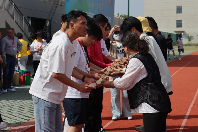 “精准投喂——果园采摘大作战”则充满趣味,参赛师生密切配合,站在指定区域外的队友专注地将“水果”投向背篓,负责接球的队友全神贯注,努力接住每一个“水果”,在提升专注力与耐心的同时,也增强了团队间的信任。