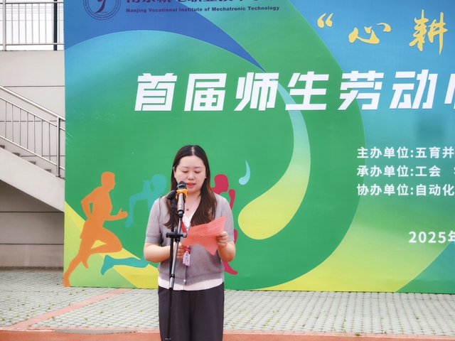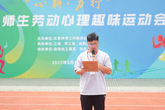 开幕式上,学校纪委书记、工会主席姜振宇为运动会致辞,她强调坚持劳动教育是学校落实立德树人根本任务的重要抓手,更是践行五育并举的重要举措,本次劳动心理趣味运动会将劳动与心理有机结合,为同学们搭建了体验劳动、锤炼意志的平台,希望大家能在比赛中感受劳动之美,释放压力,收获快乐,鼓励师生在赛场上发扬拼搏精神,以饱满的热情投入比赛,赛出水平、赛出风格,充分展现南机电人的精神风貌。