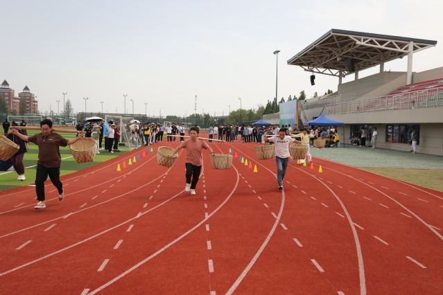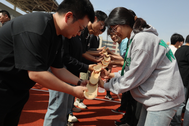 在“急速搬运工——农田物资接力赛”中,师生们肩挑扁担,跨越重重障碍物,接力运送 “粮食”。比赛过程紧张激烈,大家不仅要比拼速度,还要确保“粮食”少洒落,充分考验了团队成员的抗压协作能力。