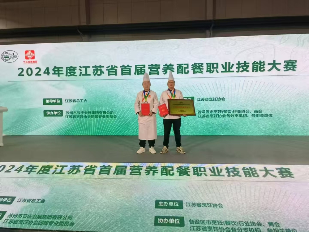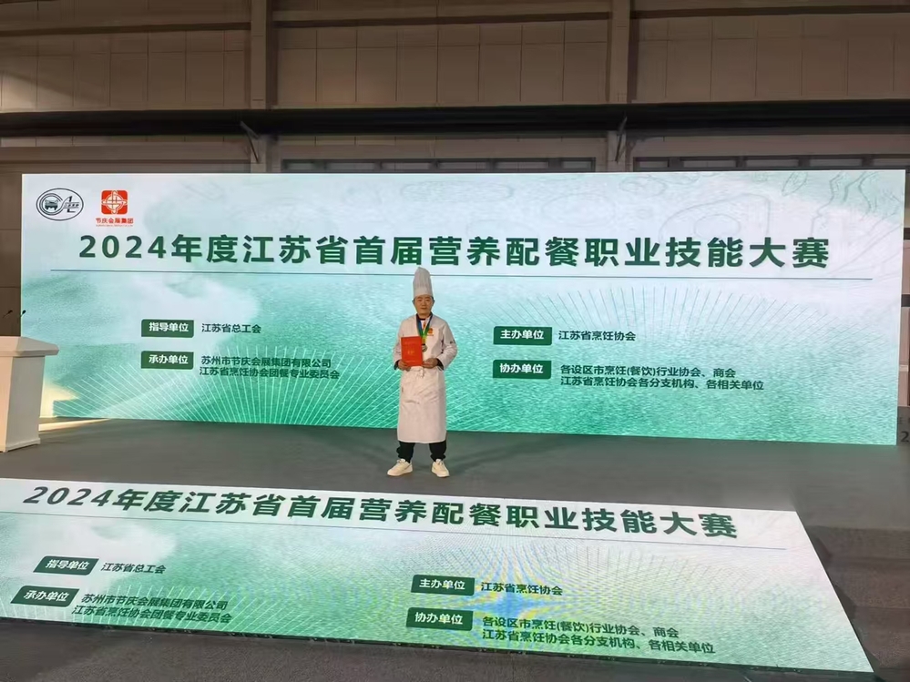 在2024年12月28日刚刚结束,由江苏省烹饪协会主办的2024年度江苏省首届营养配餐职业技能大赛中,拼搏平台一楼学生食堂厨师张发旭,凭借精湛厨艺与科学营养搭配脱颖而出,斩获学生营养餐银奖、营养套餐银奖两项大奖。