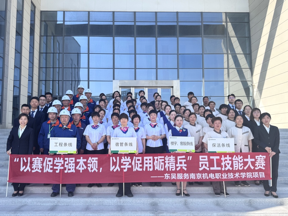 为进一步提升后勤服务专业化水平,弘扬工匠精神,展现后勤职工的精湛技艺与良好风貌,2025年5月14日下午后勤服务技能大赛在乐学楼火热开赛。学校党委副书记、副校长赵学洪、后勤处处长孙永玲、东吴服务产业集团(江苏)有限公司南京机电学院项目经理薛蒙、南京膳香园餐饮管理有限公司现场经理张小林、南京佑来乐餐饮管理有限公司现场经理杨玲出席本次活动。