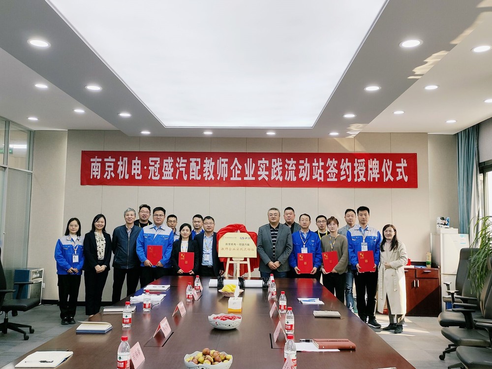 图1南京机电-冠盛汽配教师企业实践流动站授牌