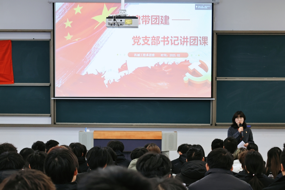 为强化党对共青团的引领作用,促进青年学子在团组织中汲取成长力量,2025年2月27日,机械工程系于善学楼101教室成功开展“党建带团建——党支部书记讲团课”活动。机械工程系党支部书记胡枫担任主讲人,机械工程系团委书记王晨歌、系团委学生干部以及180名入团积极分子参加活动。