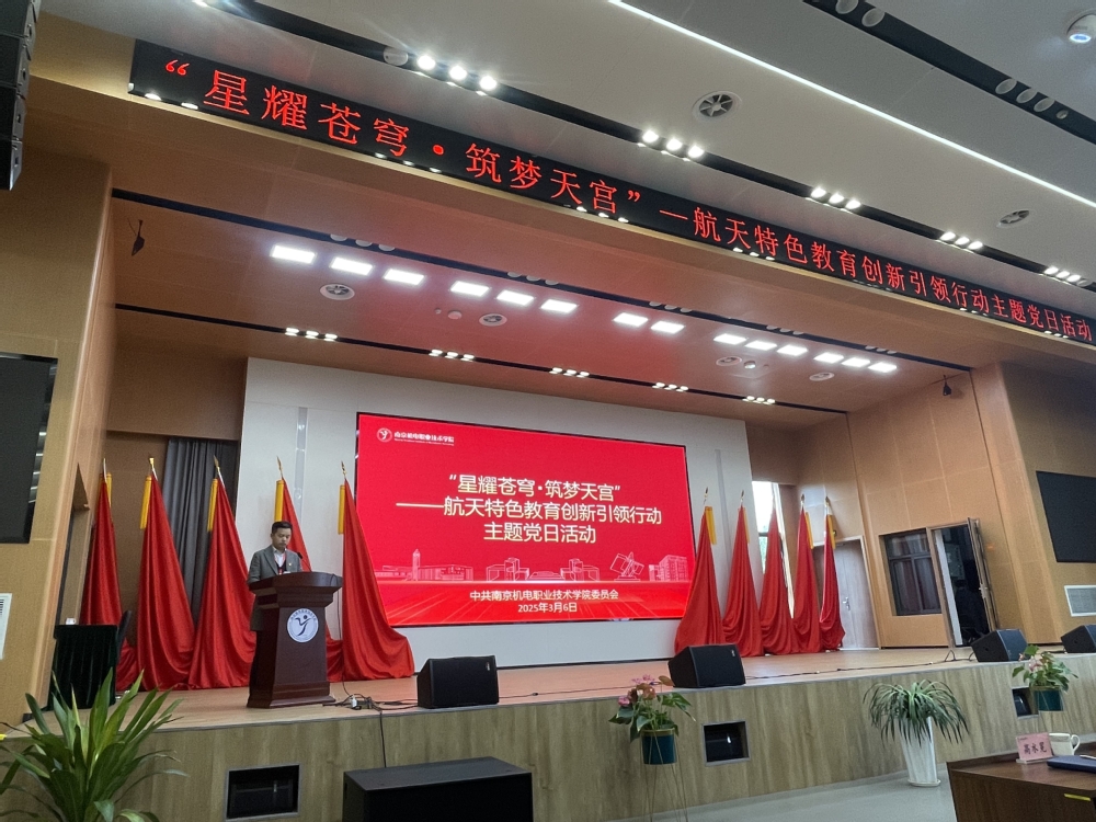 2025年3月6日14:00,拼搏平台在乐学楼101举办了“星耀苍穹・筑梦天宫”航天特色教育主题党日活动,本次活动旨在响应习近平总书记的号召,激发学生的科学兴趣,弘扬航天精神,培养学生的创新精神和实践能力,推动学校专业建设与航天文化的深度融合。中国航天科技集团有限公司党组副书记、董事方向明,中国人才研究会副会长、航天科技教育联盟秘书长、北京航天探索馆馆长周岫彬,航天科技集团党群工作部三级业务经理张广科,北京神舟航天软件技术股份有限公司市场营销部主管张凇铭,学校党委书记、校长周庆礼,党委委员、副校长刁爱军,党委委员、副校长孔德丽,党委委员、纪委书记姜振宇,党委委员夏玲玲、党委委员高水冕以及全体党员教师和学生代表参加了本次活动。
