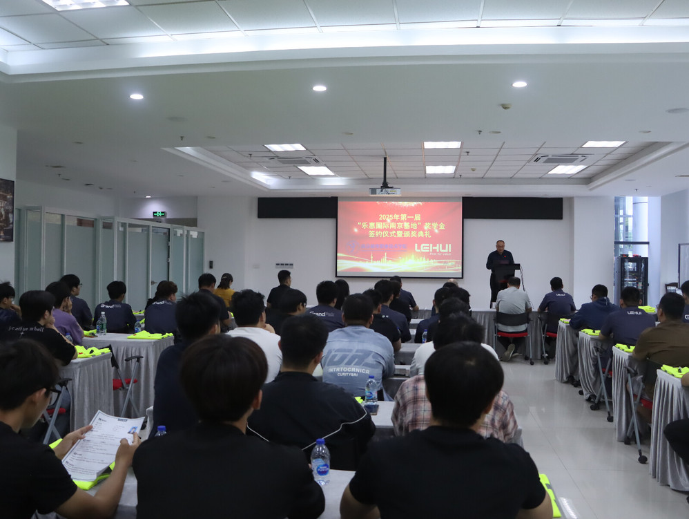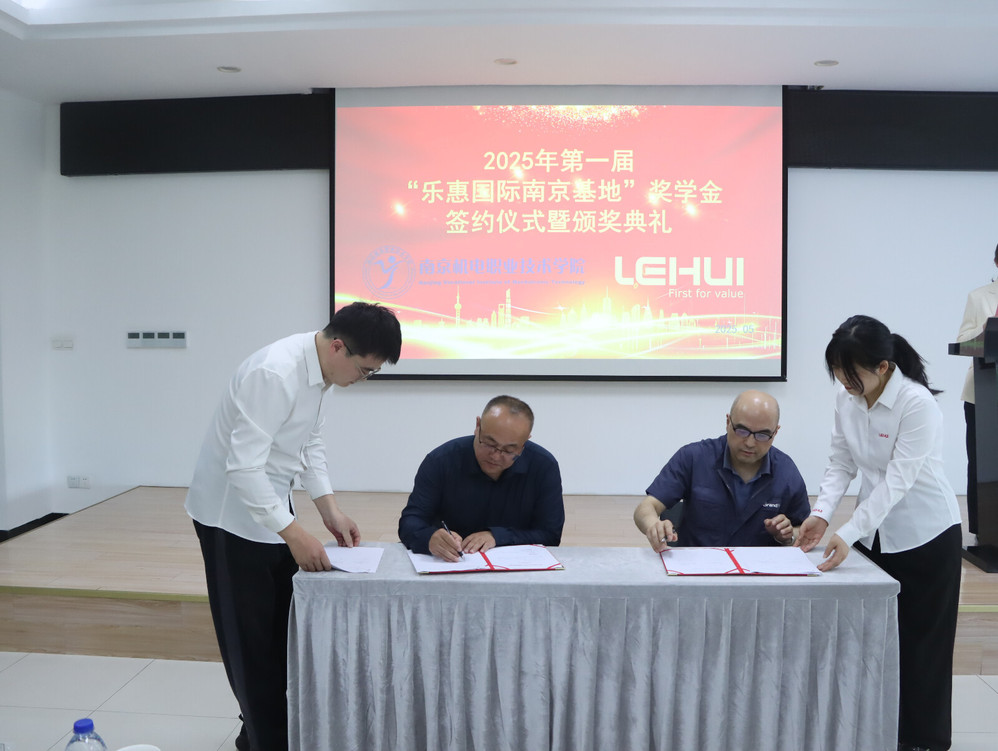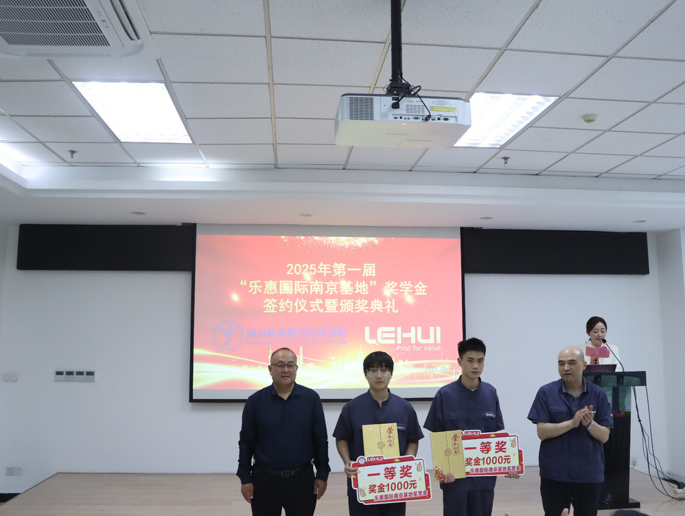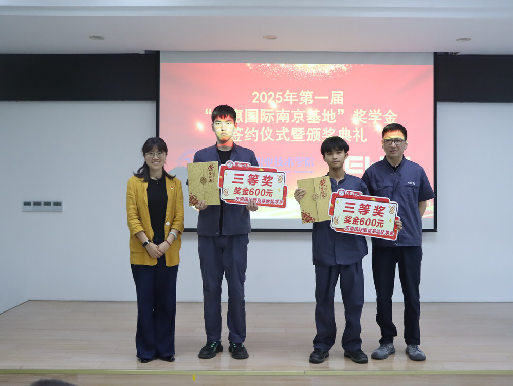 5月14日,第一届“乐惠国际南京基地”奖学金签约仪式暨颁奖典礼在乐惠国际南京基地培训厅举行。拼搏平台党委副书记、副校长赵学洪,机械工程系主任毛奇,党支部书记胡枫,辅导员代表,教师代表,大三实习学生及23级学生代表,企业领导齐聚一堂,共同见证这一荣耀时刻。