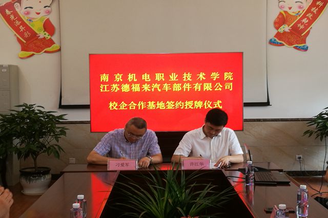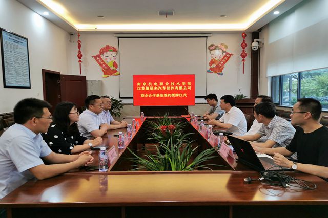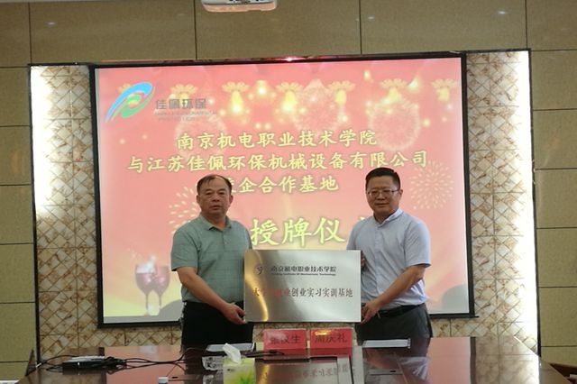 随后,学院一行5人在泰兴市高新技术开发区管委会副主任邱明波的带领下分别前往苏德福来汽车部件有限公司、江苏佳佩环保机械设备有限公司进行校企合作专题对接活动。学院领导与企业领导就人才培养、项目合作等校企合作事宜进行了深入的交流,初步达成合作意向。学院分别与两家公司签订《就业创业实习实践基地建设协议》,并向两家公司授予“拼搏平台大学生就业创业实习实训基地”铜牌。