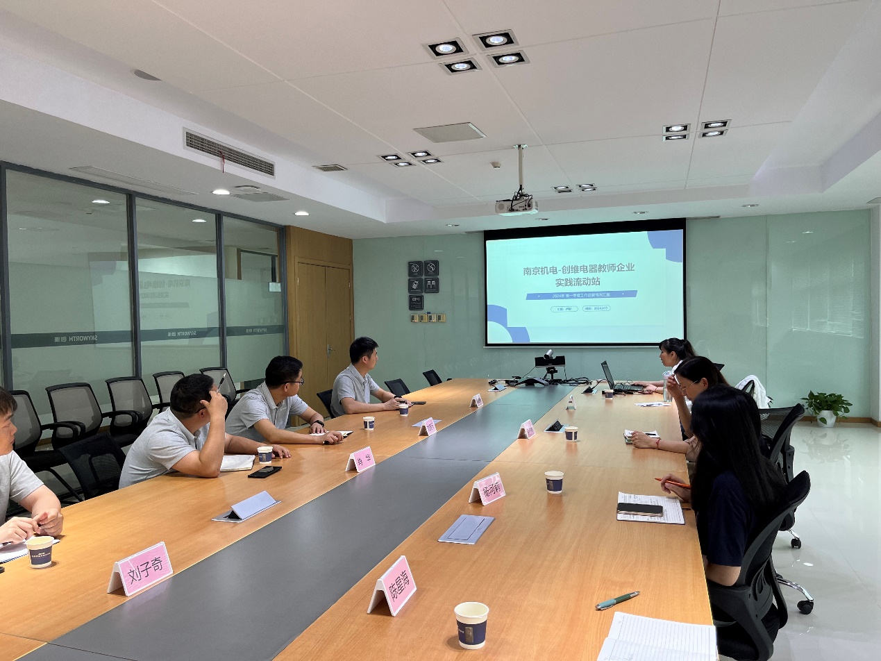 2024年5月22日,南京机电-创维电器教师企业实践流动站2024年第一季度复盘活动在创维电器股份有限公司举行。南京创维电器股份有限公司人力资源部经理刘英元、工业设计中心经理肖华、设计中心主管刘子奇,以及学校科研及校企合作处处长李木香、流动站校内负责人卢彬及进站教师参加了本次复盘活动。