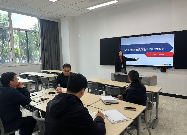 接着,教研室老师围绕高职教学情境的创设要求展开讨论。黄克瑶老师提出一个好的课堂教学情境,要求教师准确把握知识点在整个课程中的地位和作用,了解先导课程和后续课程,同时也要了解所教学生的学习现状,才能制定好教学目标,所以在教学情境的创设中应明确教学情境所需达到的教学目标。杨阳老师认为教学情境的创设应有利于调动学生的已有知识经验和认知水平,可以让学生把自己会的知识也融入其中进行联想学习,使他们能有效地掌握书本知识。候俊老师表示应保证教学情境真实或接近真实,使学生可以学以致用,加强科学、社会和技术的密切联系。