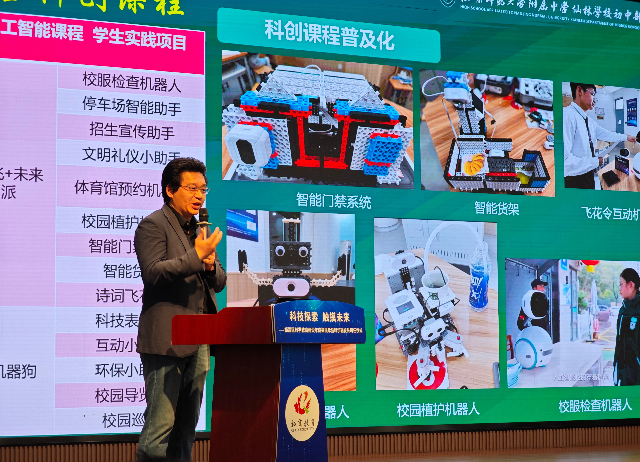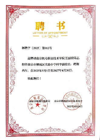 备受瞩目的科学副校长聘任仪式将活动推向高潮。我校王国珍凭借其深厚的专业功底、丰富的教学经验以及在蓝岛创客空间推动创新教育的卓越成果,脱颖而出,成为栖霞区实验小学科学副校长。王国珍长期致力于教学与研究工作,在蓝岛创客空间的建设与发展过程中,他积极推动创新教育理念与实践的融合,培养了大量具有创新精神和实践能力的高素质技术技能人才。这一聘任不仅是对他个人能力的高度认可,更是对我校在科学教育领域所做贡献的充分肯定。我校一直以来高度重视与地方基础教育的合作与交流,积极履行社会责任,致力于为地方教育事业的发展贡献力量。此次王国珍受聘为科学副校长,是我校与栖霞区在科学教育领域深化合作的重要举措。