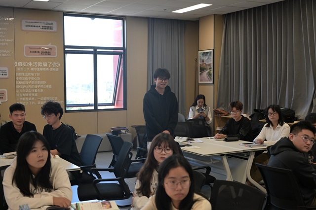 11月12日下午,詹娜·列奥诺娃校长一行首先在学院中俄教育中心与俄语班学生召开了座谈会。