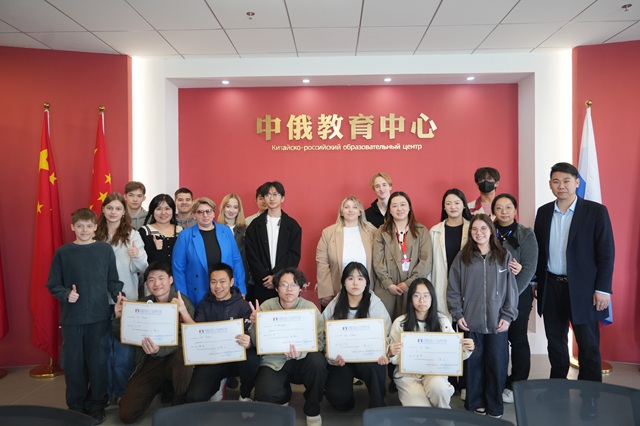 下午,双方在学校中俄教育中心举办2025年青年俄语书法比赛颁奖仪式。此次比赛由白俄罗斯国立大学中国预科学院和中俄未来人才培养计划项目办公室共同组织。莫斯科市2200学校教育主任顾问叶卡捷琳娜·叶夫根尼耶夫娜,学校党委委员、纪委书记、工会主席姜振宇,白俄罗斯国立大学中国预科学院中方院长、中国教育国际交流研修学院中俄教育合作办公室副主任张践,中俄未来人才培养计划项目办公室副主任管林子出席本次颁奖仪式并分别为本次获奖的同学颁发证书,合影留念。