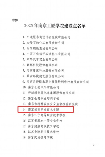 学校成功入选2025年南京工匠学院建设点名单