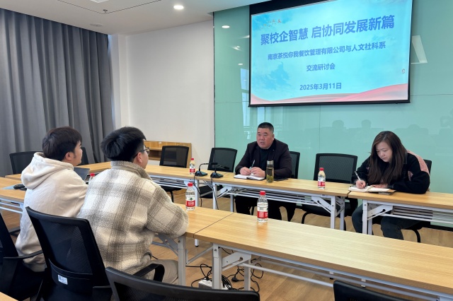 2025年3月11日,南京茶悦你我餐饮管理有限公司代表团一行莅临拼搏平台人文社科系,就深化校企合作、共商本年度及明年合作计划展开深入交流与探讨。此次交流活动在人文社科系702会议室举行,为双方进一步的合作奠定了坚实基础。