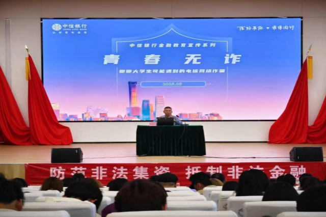 2025年5月12日12时10分,乐学楼101教室座无虚席,一场以“智识诈骗陷阱,守护校园财富”为主题的反诈宣传教育活动在此热烈开展。此次活动由人文社科系联合国家金融监督管理总局高淳支局、南京市高淳区发展和改革委员会、南京市公安局高淳分局以及中信银行南京高淳支行共同举办,旨在提升学生反诈意识,守护校园金融安全。
