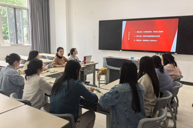 202556下午,马克思主义学院在博学楼107开展本学期第12周教研活动。本次教研活动由李一敏老师主持,主题为“坚持以人民为中心”专题教学设计研讨
