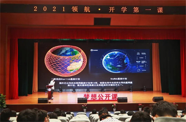 2021年是建党100周年,是全面建成小康社会、实现第一个百年奋斗目标之年后,开启全面建设社会主义现代化国家新征程、向第二个百年奋斗目标进军的开局之年。为聚焦航空航天技术,促进区域航空航天产业发展,弘扬航天精神、培养青少年家国情怀、科学和艺术素质、工匠精神,推动中国航天精神进校园,拼搏平台于10月29日在学院多功能报告厅开展主题为“仰望星空,我们的征途是星辰大海”的2021领航·开学第一课暨梦想公开课。公开课由南京航空航天大学教授、博士生导师闻新和之江实验室激光通信方向负责人,长春光机所光学工程博士汪逸群主讲。学院党委书记、院长周庆礼,党委委员、副院长刁爱军出席公开课,青马班学员、院团委、各系团总支、各班级团支部书记、新生代表参与公开课。