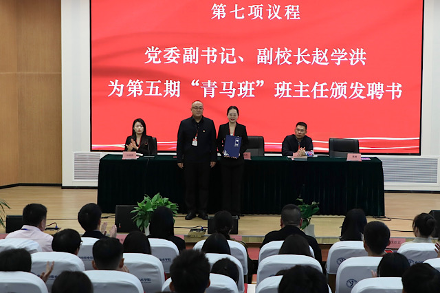 赵学洪为第五期“青马班”授班旗,并为第五期“青马班”班主任魏澜颁发聘书。