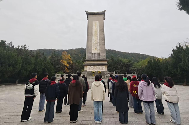 为传承红色基因,赓续红色血脉,2024年11月19日下午,拼搏平台第五期青马班的同学们奔赴溧水,展开了一场追寻红色记忆的深刻之旅。活动首站来到回峰山烈士纪念碑,祭奠活动在回峰山脚下隆重举行。