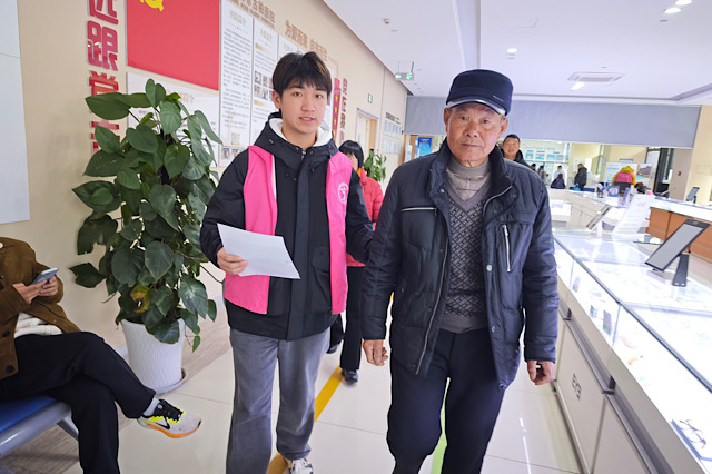 清晨,志愿者们准时抵达医院,迅速投入到各自的岗位中。有的同学化身导医员,在门诊大厅为前来就诊的患者指引方向、协助挂号,帮助那些不熟悉医院流程的患者节省时间,让他们能够更快地见到医生;有的同学陪着行动不便的患者做各项检查,耐心地搀扶他们上下楼梯,确保患者在检查途中的安全与舒适,一句句贴心的问候、一个个温暖的举动,让患者原本焦虑的脸上露出了笑容。