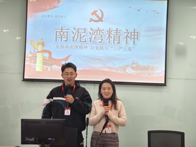 活动开始,老师们联唱陕北民歌《南泥湾》,用饱含深情的歌声,生动诠释了南泥湾精神的内涵,“是自力更生、艰苦奋斗、实事求是、团结协作、无私奉献、勇于创新的革命精神,体现了共产党人在困境中顽强拼搏、开拓进取的优秀品质……”歌声激昂有力,充满了对南泥湾精神的敬仰与传承,现场气氛热烈,展现出昂扬的精神风貌,仿佛看到了“陕北好江南”的奋斗画卷,为后续的主题学习营造了浓厚的氛围。