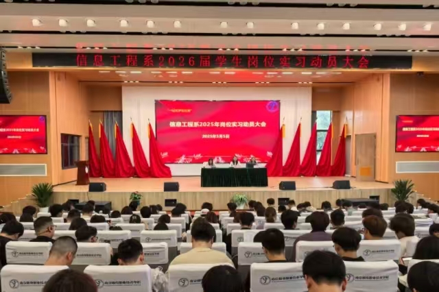 5月5日,信息工程系在乐学楼101召开2026届学生岗位实习动员大会。信息工程系党支部副书记陈雪、教学主任刘娴出席会议,2026届辅导员和全体2026届学生共600余人参加了动员会。大会由系就业干事陈莉娟主持。