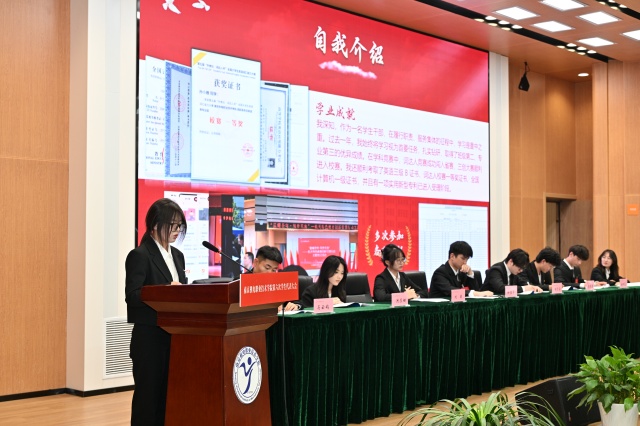 随着议程推进,大会正式进入紧张激烈的竞选环节。第六届学生联合会委员会11位候选人从自己一年来的工作经历、总结反思、未来规划等方面展开竞选。大会进入选举阶段,由总监票人张进宝老师说明选票发放情况,与会代表有序进行投票。会议秉持着公平、公正、公开的原则,以无记名投票方式差额选举。刘颖同学宣读大会倡议书的同时,工作人员完成计票。最终于方琦、卢发硕、孙小雅、苏保媛、肖伦昊、孟浏、葛彦成、褚汤晨、裴晓勇等9名同学(按姓氏笔画排序)当选为拼搏平台第六届学生联合会委员会委员。