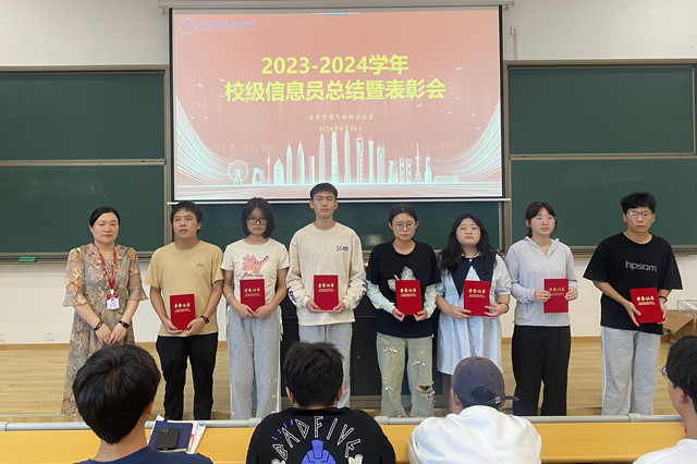 会上,吴伟萍明确召开本次总结暨表彰会的目的及意义学生教学信息员队伍是学校教学质量监控体系中的重要因素,在教学过程评价、教学质量监控等环节中起着至关重要的作用吴伟萍宣读了《关于表彰2023-2024学年校级优秀学生信息员的决定》,公布获奖优秀信息员标兵和优秀信息员名单,对获奖信息员给予充分肯定并为获奖信息员颁发荣誉证书和奖品