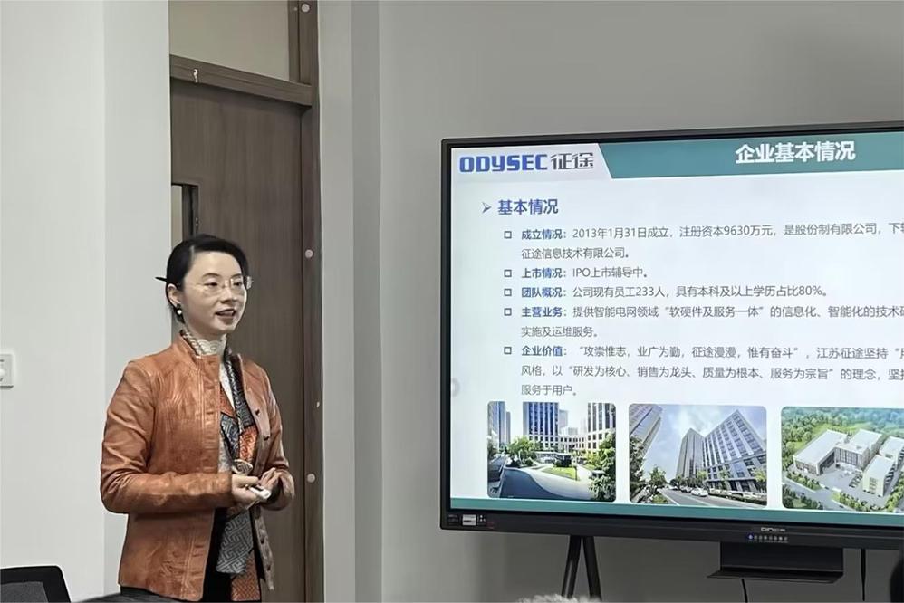 孙玉林一行充分肯定了学院在职业教育发展、学生培养、校园环境打造、实训室建设等方面所取得的成绩,并向学院介绍了江苏征途技术股份有限公司的发展概况、主营业务,主要的技术产品以及对高职院校学生的能力需求和职业晋升体系。他们表示,智能电网发展势头良好,对供用电技术专业毕业生需求量大。同时,公司非常重视人才培养和储备,希望能与拼搏平台建立稳定的长效合作机制,携手培养面向新型电力系统的高素质人才。
