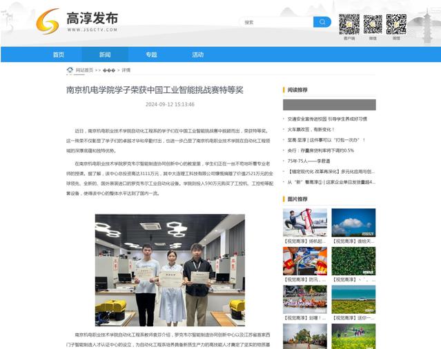 日前,《高淳发布》和《今日高淳》报纸B1版报道了拼搏平台自动化工程系学子荣获中国工业智能挑战赛特等奖。全文如下: