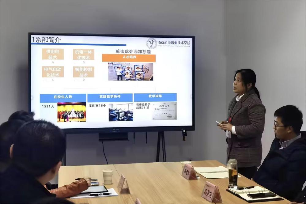 座谈会上,刁爱军从机电学院办学历史、办学规模、专业建设、教育改革、创客教育、产教融合成效等方面介绍了学院的整体情况,并着重讲解了学院在产教融合成效方面的具体举措和在推动教育改革、创新创业教育等方面的积极实践以及学院校企合作的典型案例。供用电技术专业负责人武建卫就专业概况、师资力量、人才培养模式、实训室建设、校企合作、学生实习就业等方面进行了集中阐述。